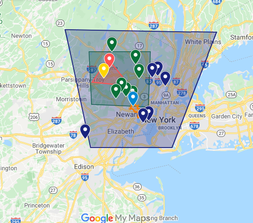 The nearest cities are Harrison, East Newark, North Arlington and North Broadway of Newark are just 2.5 miles away from Kearny.