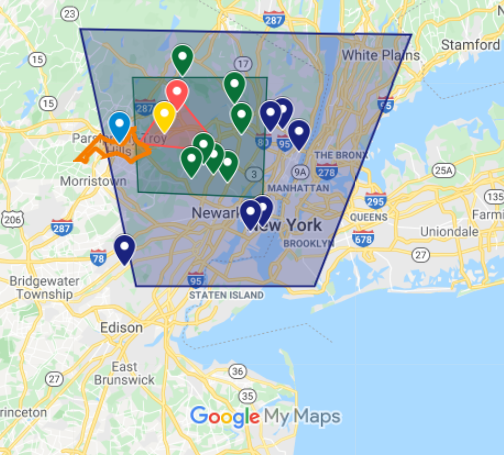 Parsippany is around 35 miles from Manhattan. The driving time from one to another is about 40 minutes by car.