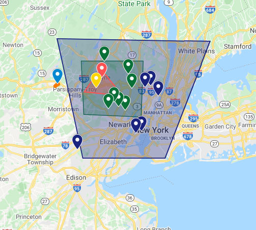 Rockaway Township shares its boundaries with the municipalities of Boonton Township, Denville Township, Jefferson Township, and Randolph Townships. Rockaway, Kinnelon, Dover, and Wharton in Morris County; and West Milford in Passaic County also share its borders. Victory Gardens is the closest neighbor to Rockaway Township at a distance of 1.9 miles away from it. Next comes Dover and White Meadow Lake at a distance of 2.5 miles from Rockaway Township. Wharton and Mountain Lakes come next at 3 miles distance. Morris Plains and Lake Telemark is 4.5 miles away from Rockaway Township.Boonton, Kendall, Mount Arlington, Morristown, Hopatcong, and Byram Center are the closest neighborhoods 8 miles away from Rockaway.